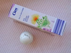 De la brandul cosmetic Cien din Lidl am cumpărat setul de trei bombe de baie, o combinație parfumată de trandafir, lavandă și șofrănel. Sunt ambalate într-o cutie drăguță și au un preț mic, cred că am dat 3 sau 4 euro pe ele. Nu știu dacă se găsesc și la noi, eu chiar o să le caut la raftul cosmetic din Lidl când ajung acasă.